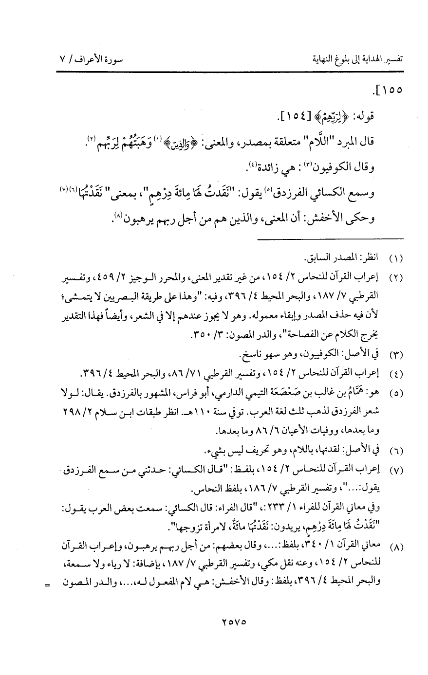 قال المبرد " اللاَّم " متعلقة بمصدر، والمعنى: {والذين} وَهَبَتُهُمْ لِرَبِّهم.