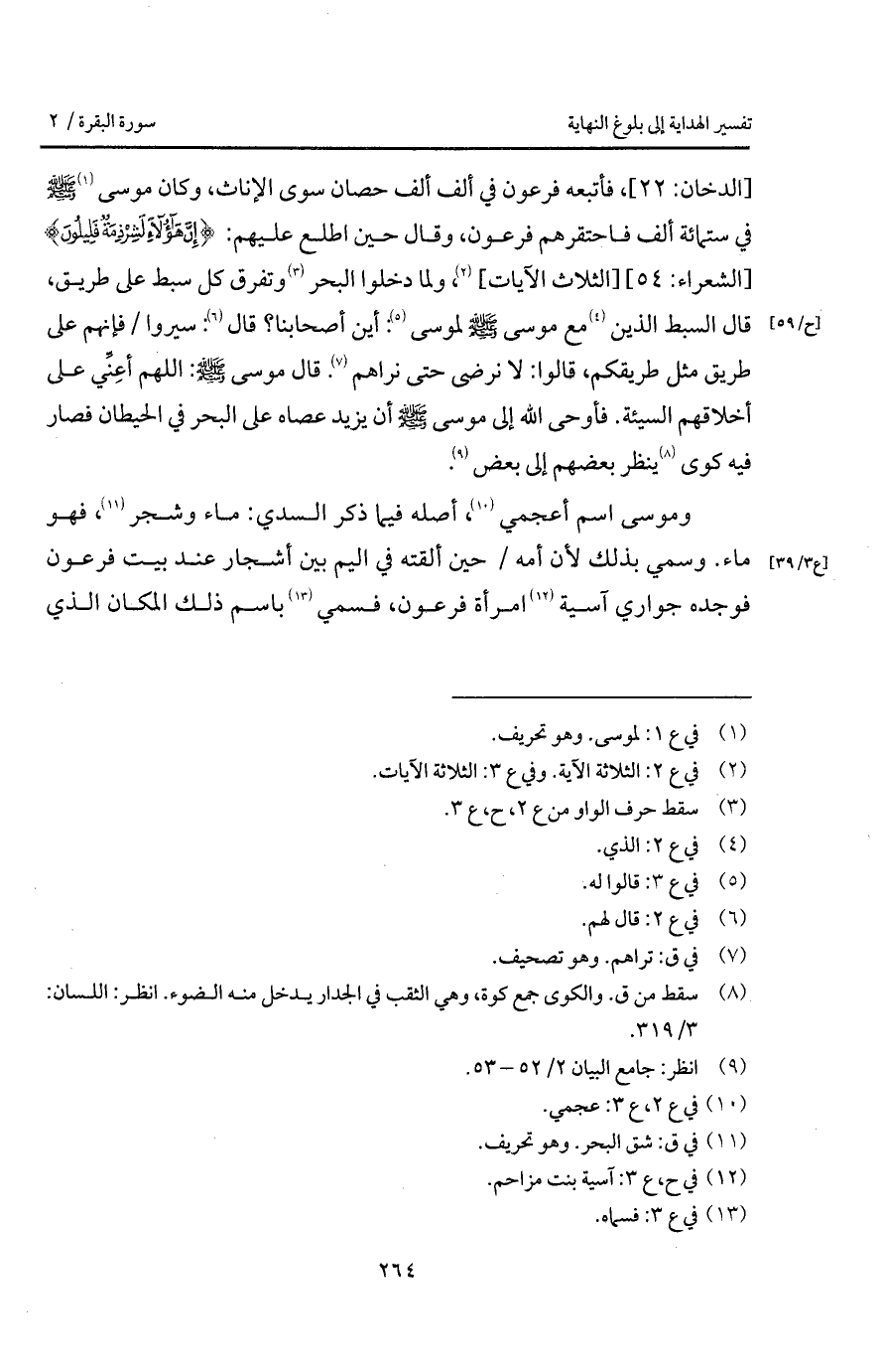 [الدخان: 23]، فأتبعه فرعون في ألف ألف حصان سوى الإناث، وكان موسى A في ستمائة ألف فاحتقرهم فرعون، وقال حين اطلع عليهم: {إِنَّ هؤلاء لَشِرْذِمَةٌ قَلِيلُونَ} [الشعراء: 54] [الثلاث الآيات]، ولما دخلوا البحر وتفرق كل سبط على طريق، قال السبط الذين مع موسى A لموسى: أين أصحابنا؟ قال: سيروا / فإنهم على طريق مثل طريقكم، قالوا: لا نرضى حتى نراهم. قال موسى A: اللهم أعِنِّي على أخلاقهم السيئة. فأوحى الله إلى موسى A أن يزيد عصاه على البحر في الحيطان فصار فيه كوى ينظر بعضهم إلى بعض.
