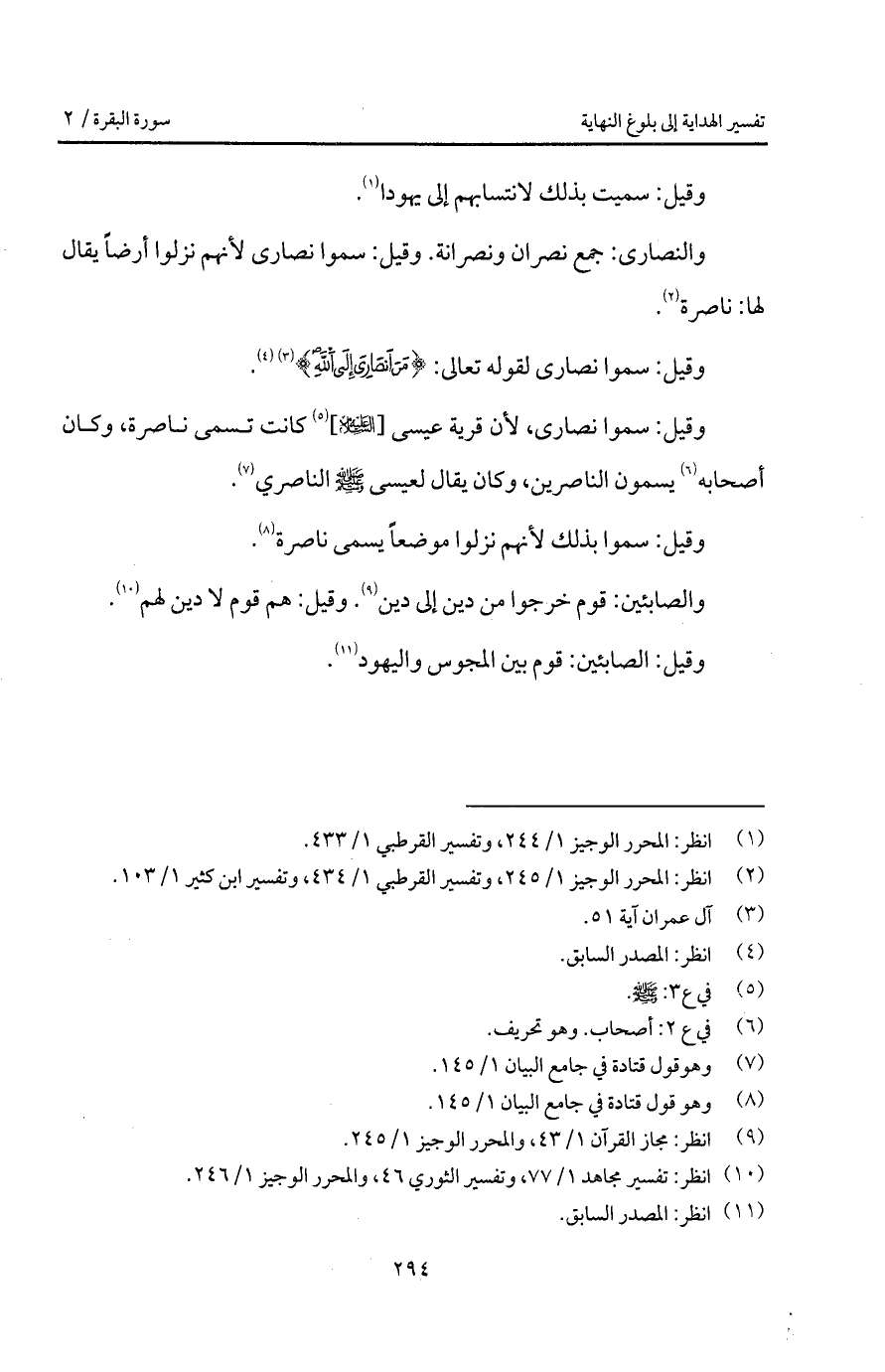 وقيل: سموا نصارى، لأن قرية عيسى [عليه السلام] كانت تسمى ناصرة، وكان أصحابه يسمون الناصرين، وكان يقال لعيسى A الناصري.