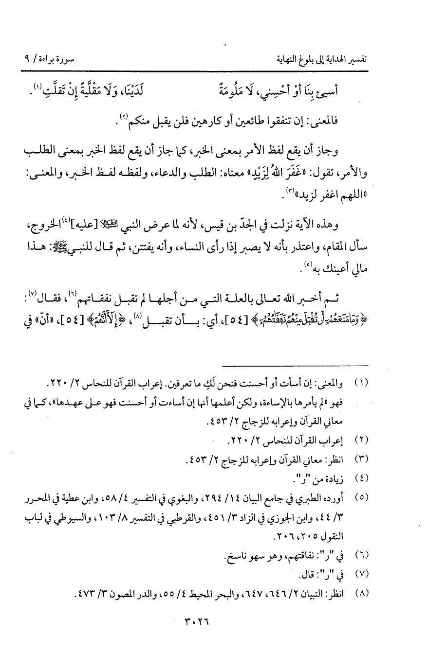 ثم أخبر الله تعالى بالعلة التي من أجلها لم تقبل نفقاتهم، فقال: {وَمَا مَنَعَهُمْ أَن تُقْبَلَ مِنْهُمْ نَفَقَاتُهُمْ}، أي: بأن تقبل، {إِلاَّ أَنَّهُمْ}، " أنّ " في