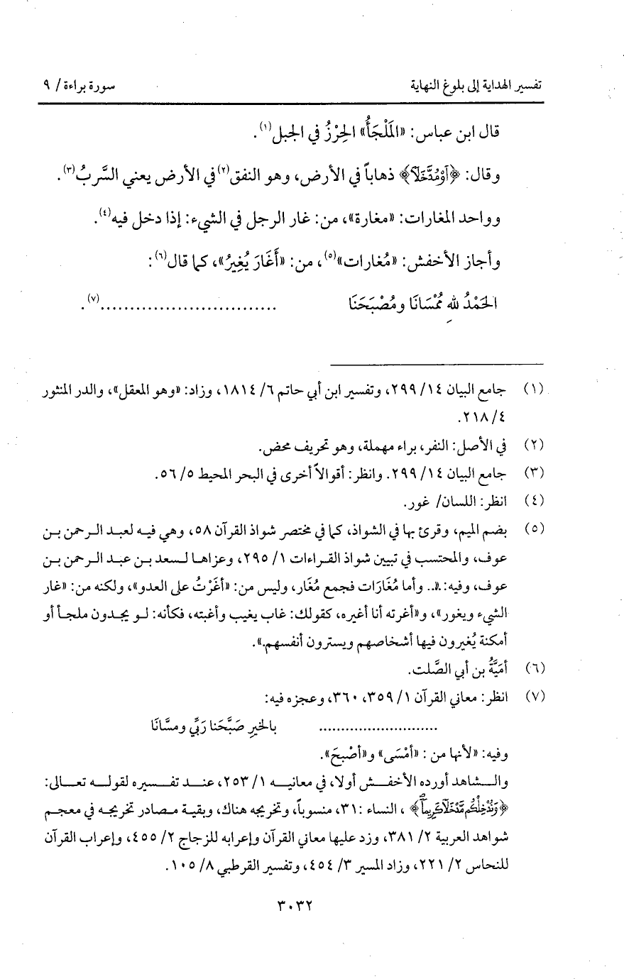 قال ابن عباس: " المَلْجَأُ " الحِرْزُ في الجبل.