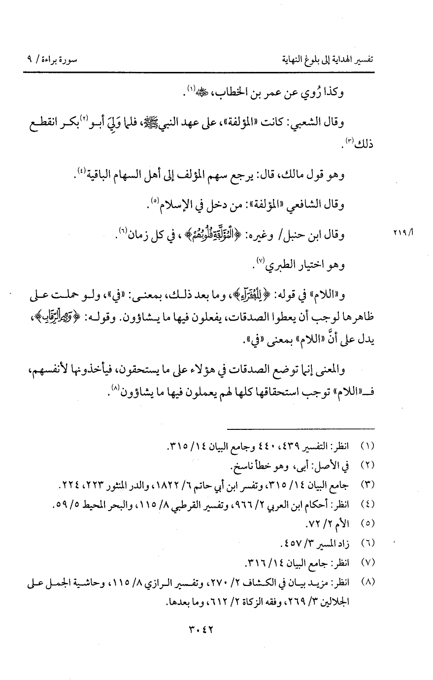 وقال الشعبي: كانت " المؤلفة "، على عهد النبي A، فلما وَلِيَ أبو بكر انقطع ذلك.