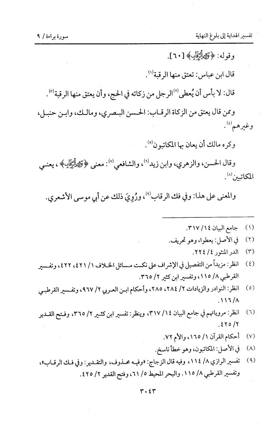 والمعنى على هذا: وفي فك الرقاب، ورُوِيَ ذلك عن أبي موسى الأشعري.