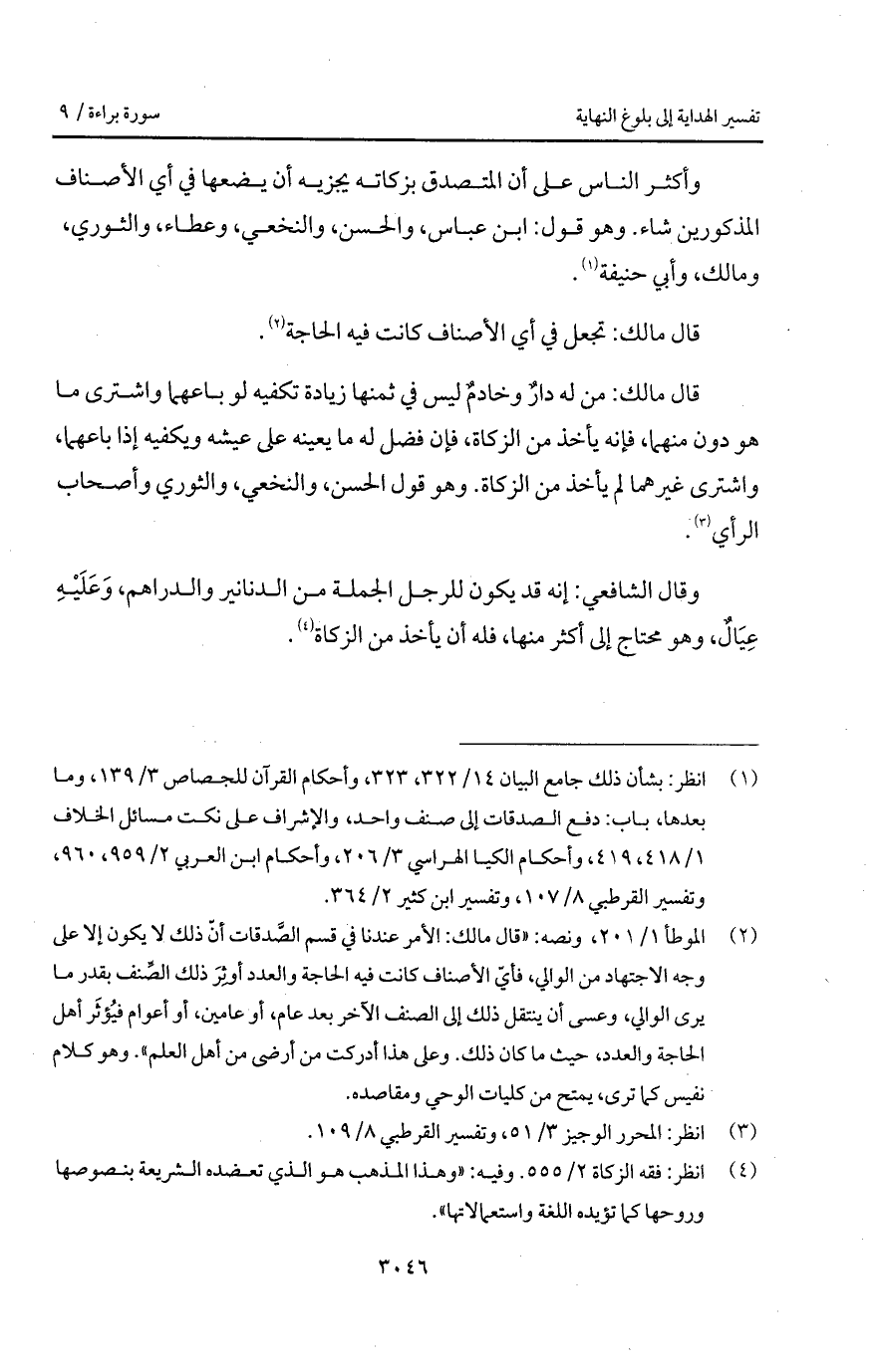 وأكثر الناس على أن المتصدق بزكاته يجزيه أن يضعها في أي الأصناف المذكورين شاء. هو قول: ابن عباس، والحسن، والنخعي، وعطاء، والثوري، ومالك، وأبي حنيفة.