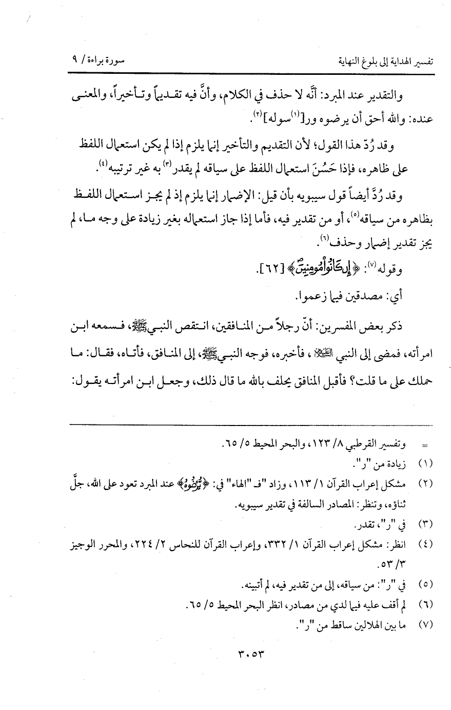 والتقدير عند المبرد: أنَّه لا حذف في الكلام، وأنَّ فيه تقديماً وتأخيراً، والمعنى عنده: والله أحق أن يرضوه ور [سوله].