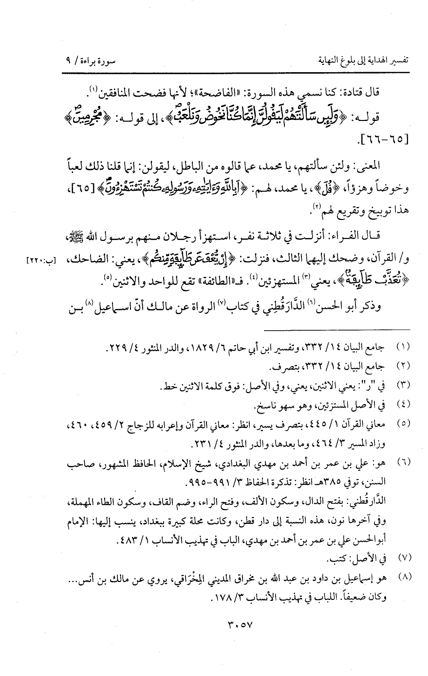 قوله: {وَلَئِن سَأَلْتَهُمْ لَيَقُولُنَّ إِنَّمَا كُنَّا نَخُوضُ وَنَلْعَبُ}، إلى قوله: {مُجْرِمِينَ}.