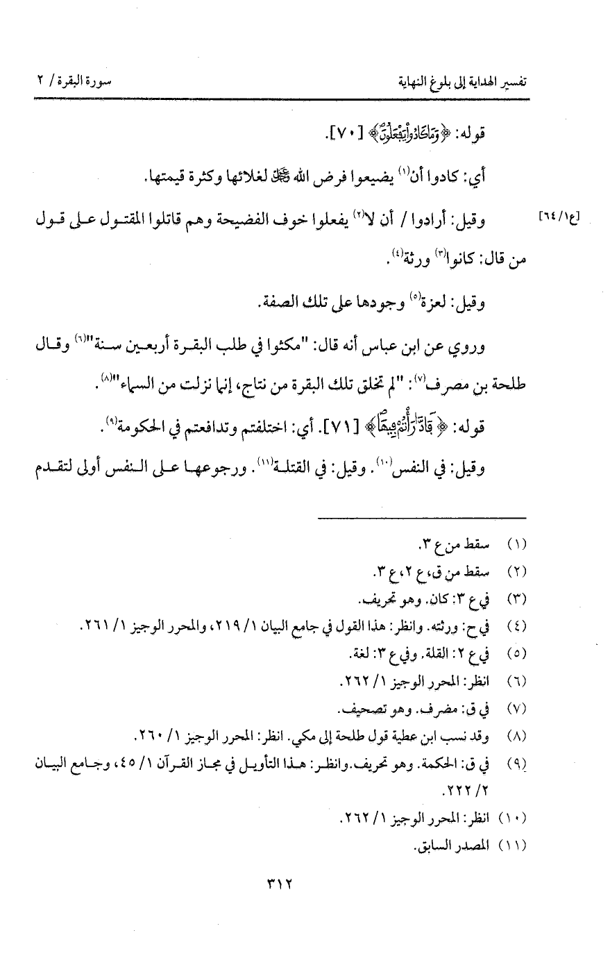 وروي عن ابن عباس أنه قال: " مكثوا في طلب البقرة أربعين سنة " وقال طلحة بن مصرف: " لم تخلق تلك البقرة من نتاج، إنما نزلت من السماء ".