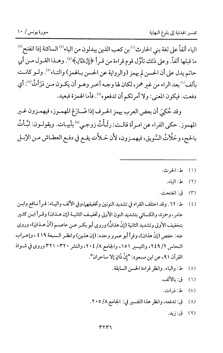 الياء ألفاً على لغة بني الحارث بن كعب الذين يبدلون من الياء الساكنة إذا انفتح ما قبلها ألفاً. وعلى ذلك تأوَّل قوم قراءة من قرأ {إِنْ هذان} [طه: 63]. وهذا القول من أبي حاتم يدل على أن الحسن لم يهمز (والرواية عن الحسن بالهمز) والتاء. ولو كانت بألف بعد الراء من غير همز، لكان لها وجه آخر وهو أن يكون من دَرَأتُ: أي: دفعت. فيكون المعنى: ولا أمرتكم أن تدفعوه. فأما الهمزة فبعيد.