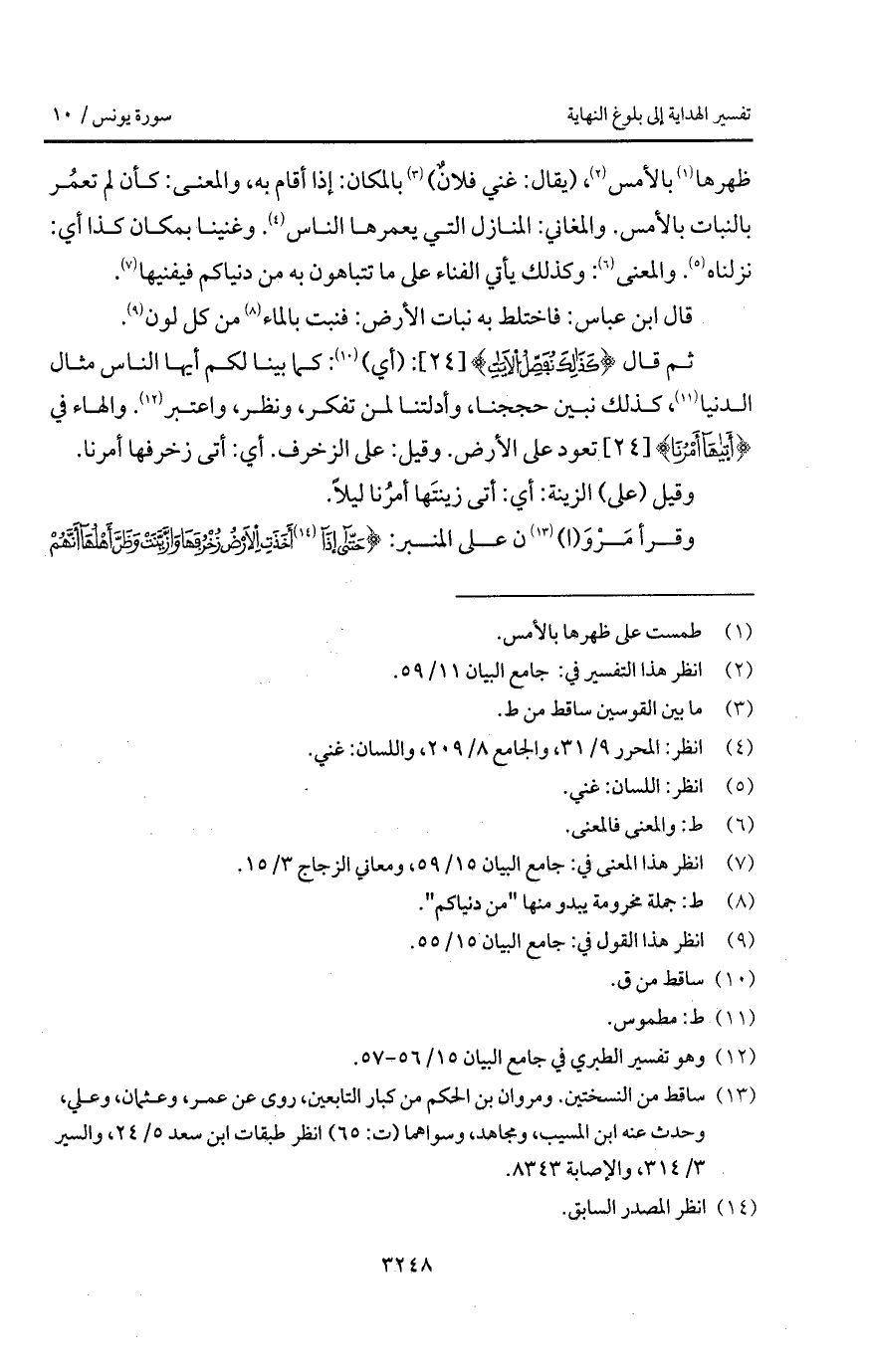 ثم قال: {كذلك نُفَصِّلُ الآيات}: (أي): كما بينا لكم أيها الناس مثال الدنيا، كذلك نبين حججنا، وأدلتنا لمن تفكر، ونظر، واعتبر. والهاء في {أَتَاهَآ أَمْرُنَا} تعود على الأرض. وقيل: على الزخرف. أي: أتى زخرفها أمرنا.