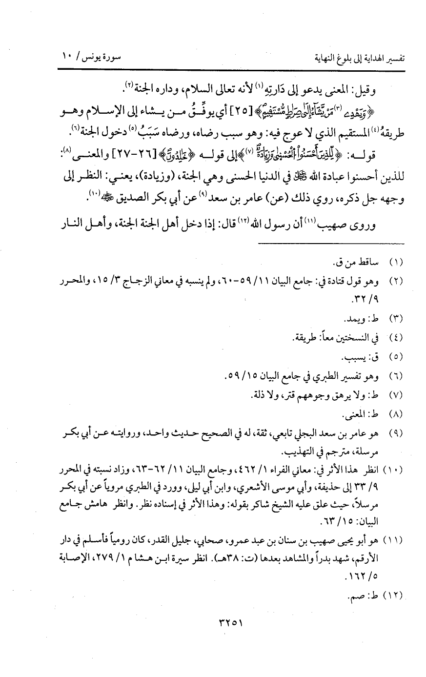قوله: {لِّلَّذِينَ أَحْسَنُواْ الحسنى وَزِيَادَةٌ} إلى قوله {خَالِدُونَ} والمعنى: للذين أحسنوا عبادة الله D في الدنيا الحسنى وهي الجنة، (وزيادة)، يعني: النظر إلى وجهه جل ذكره، روي ذلك (عن) عامر بن سعد عن أبي بكر الصديق Bهـ.