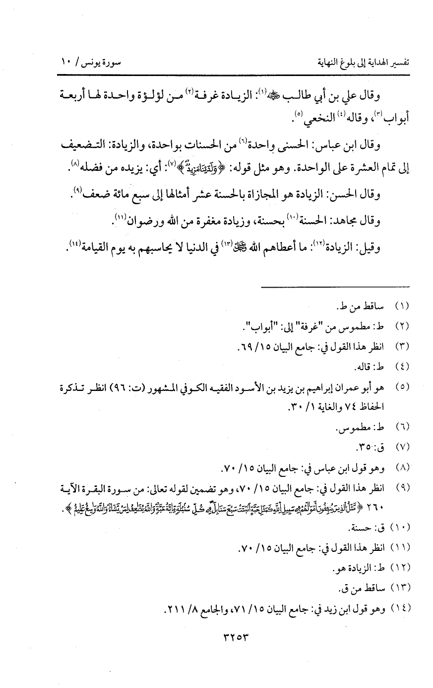 وقال علي بن أبي طالب Bهـ: الزيادة غرفة من لؤلؤة واحدة لها أربعة أبواب، وقاله النخعي.