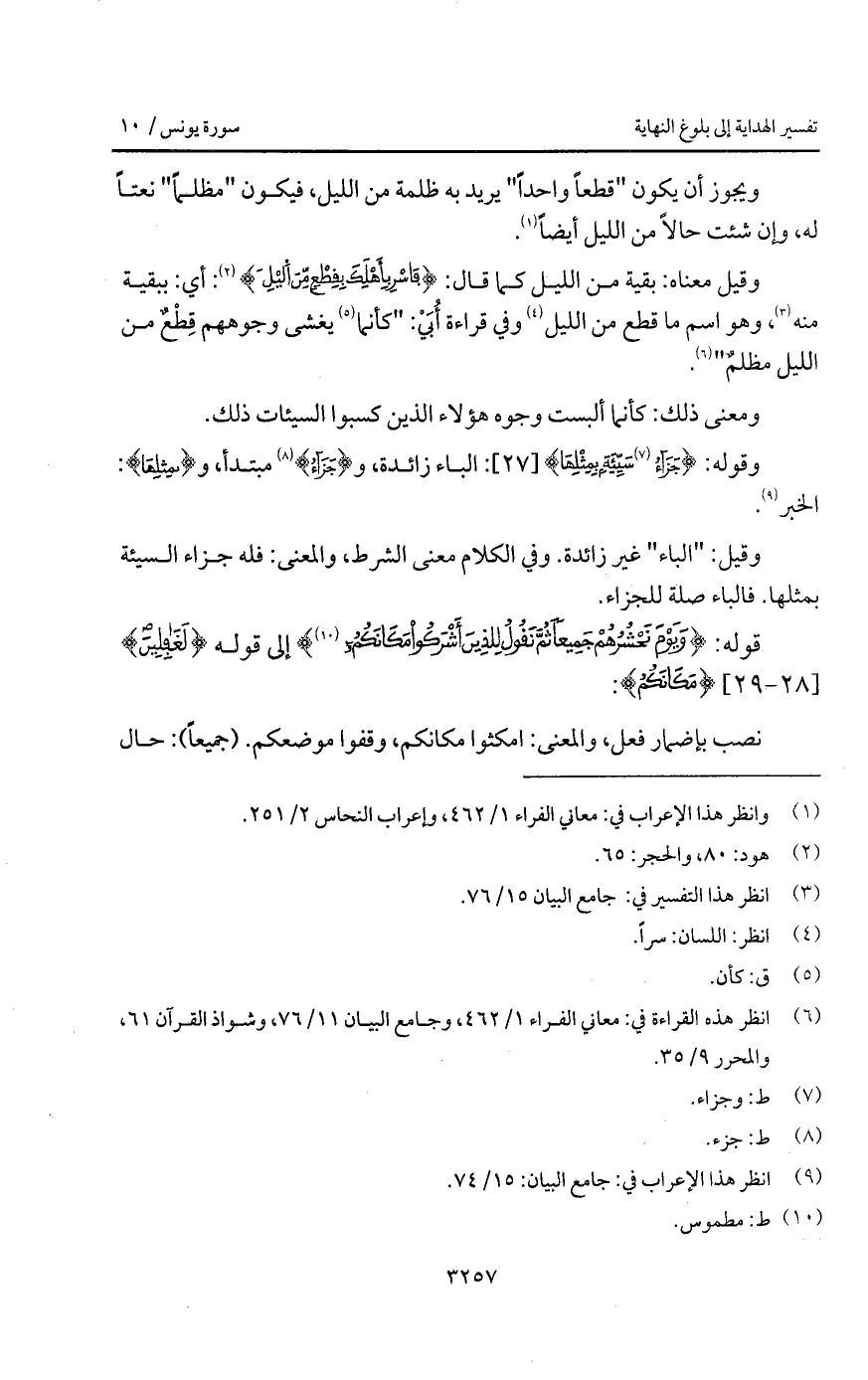 ويجوز أن يكون " قطعاً واحداً " يريد به ظلمة من الليل، فيكون " مظلماً " نعتاً له، وإن شئت حالاً من الليل أيضاً.