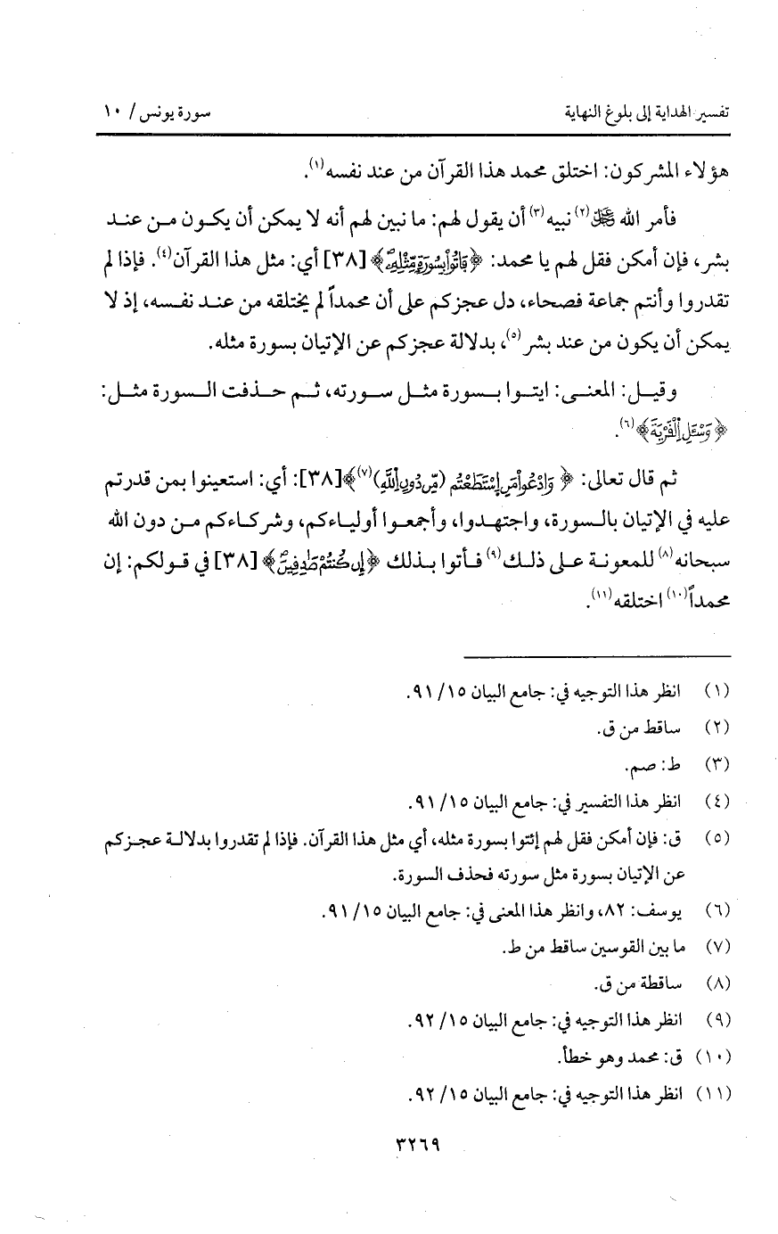 فأمر الله D نبيه أن يقول لهم: ما نبين لهم أنه لا يمكن أن يكون من عند بشر، فإن أمكن فقل لهم يا محمد: {فَأْتُواْ بِسُورَةٍ مِّثْلِهِ} أي: مثل هذا القرآن. فإذا لم تقدروا وأنتم جماعة فصحاء، دل عجزكم على أن محمداً لم يختلقه من عند نفسه، إذ لا يمكن أن يكون من عند بشر، بدلالة عجزكم عن الإتيان بسورة مثله.