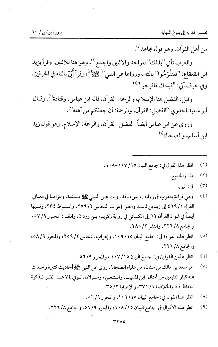 وروي عن ابن عباس أيضاً: الفضل: القرآن، والرحمة: الإسلام. وهو قول زيد ابن أسلم، والضحاك.