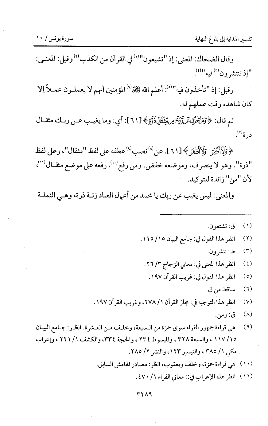 " وَلاَ أَكْبَرَ وَلاَ أَصْغَرَ ". عن نصب عطفه على لفظ " مثقال "، وعلى لفظ " ذرة ". وهو لا ينصرف، وموضعه خفض. ومن رفع، رفعه على موقع مثقال، لأن " من " زائدة للتوكيد.