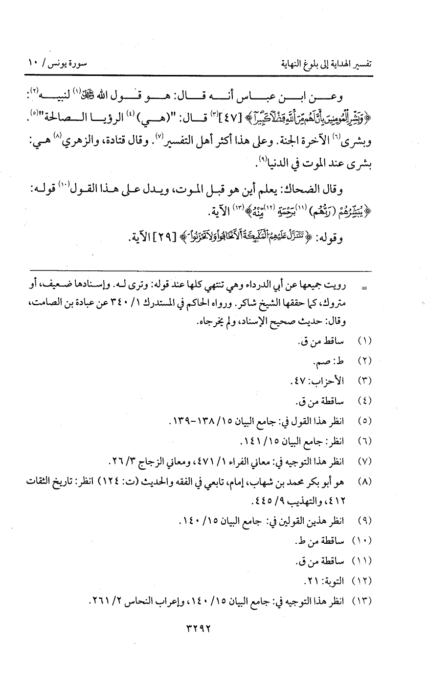 وعن ابن عباس أنه قال: هو قول الله D لنبيه: {وَبَشِّرِ المؤمنين بِأَنَّ لَهُمْ مِّنَ الله فَضْلاً كَبِيراً} [الأحزاب: 47] قال: " (هي) الرؤيا الصالحة ". وبشرى الآخرة الجنة. وعلى هذا أكثر أهل التفسير. وقال قتادة، والزهري هي: بشرى عند الموت في الدنيا.