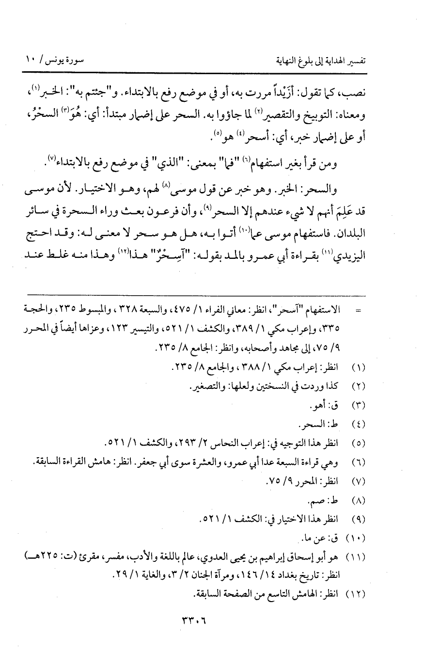 نصب، كما تقول: أزَيْداً مررت به، أو في موضع رفع بالابتداء. و " جئتم به ": الخبر، ومعناه: التوبيخ والتقصير لما جاؤوا به. السحر على إضمار مبتدأ: أي: هُوَ السحْرُ، أو على إضمار خبر، أي: أسحر هو.