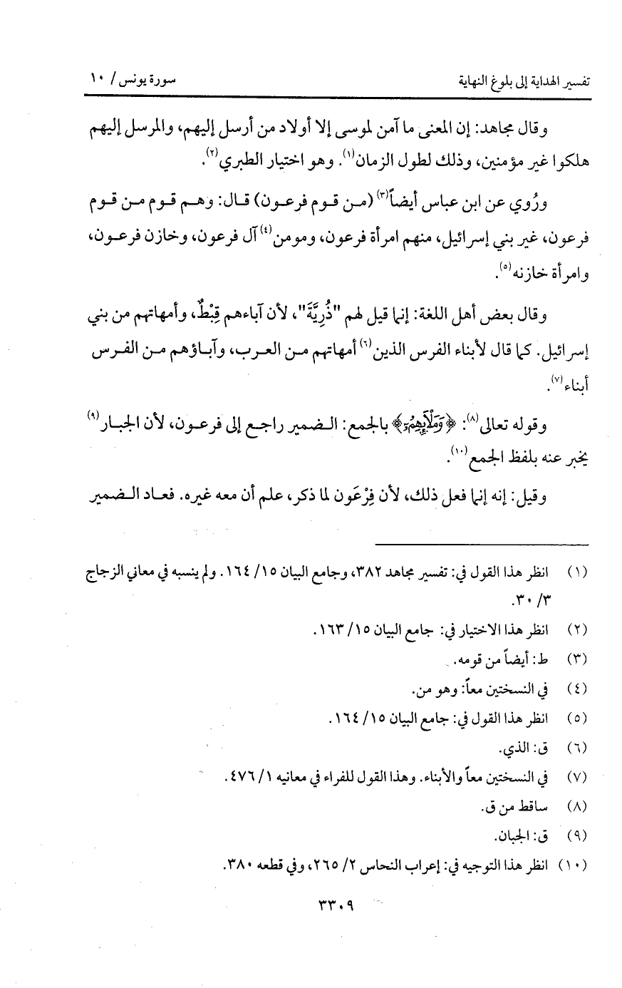 وقال مجاهد: إن المعنى ما آمن لموسى إلا أولاد من أرسل إليهم، والمرسل إليهم هلكوا غير مؤمنين، وذلك لطول الزمان. وهو اختيار الطبري.