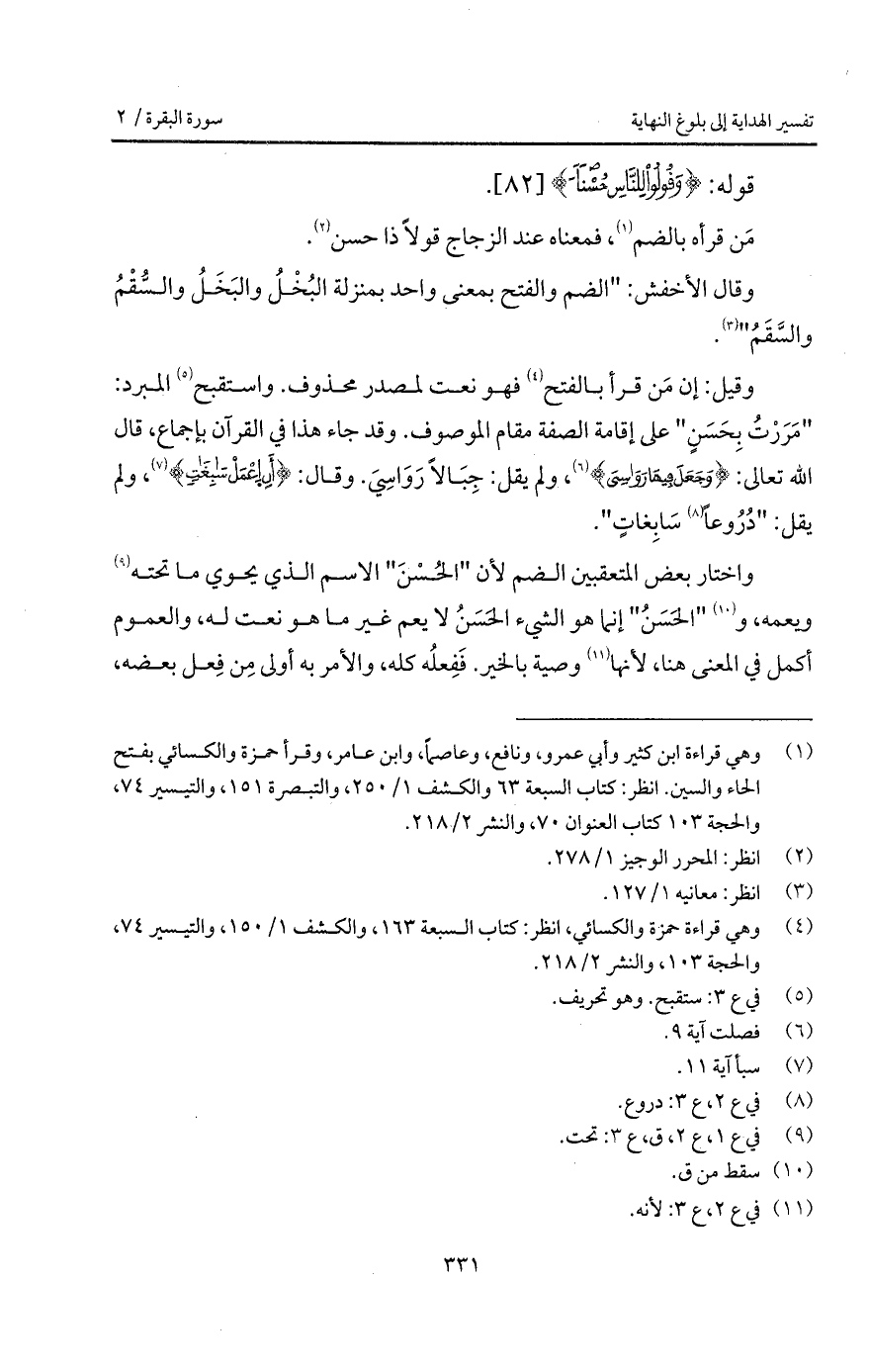مَن قرأه بالضم، فمعناه عند الزجاج قولاً ذا حسن.