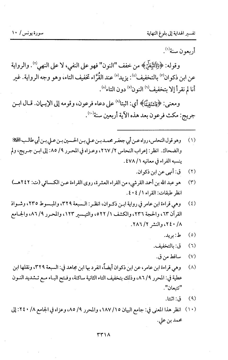 وقوله: {وَلاَ تَتَّبِعَآنِّ} من خفف " النون " فهو على النفي، لا على النهي. والرواية عن ابن ذكوان بالتخفيف: يزيد عند القرَّاء تخفيف التاء، وهو وجه الرواية. غير أنا لم نقرأ إلا بتخفيف النون دون التاء.