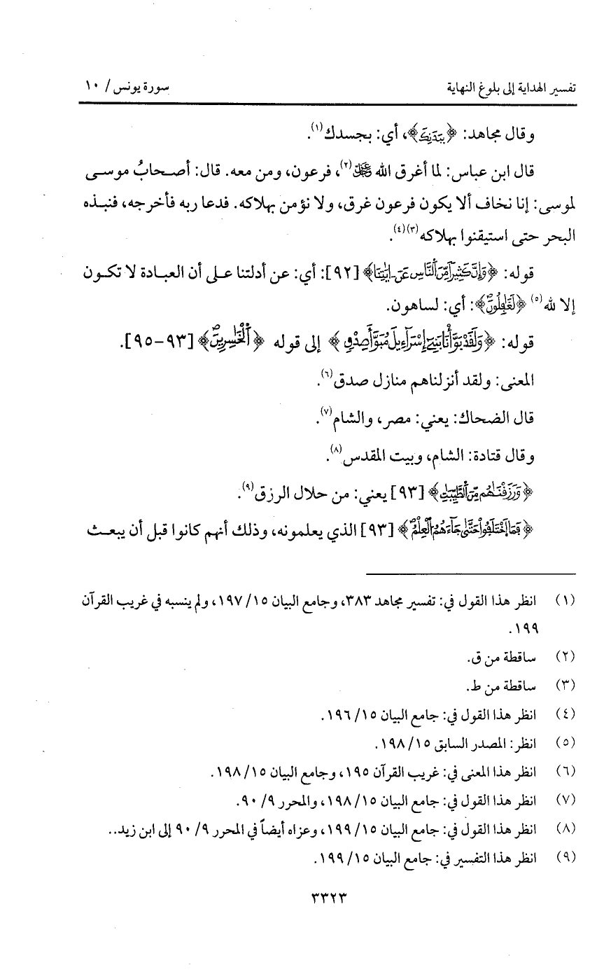 قوله: {وَلَقَدْ بَوَّأْنَا بني إِسْرَائِيلَ مُبَوَّأَ صِدْقٍ} إلى قوله: {الخاسرين}.