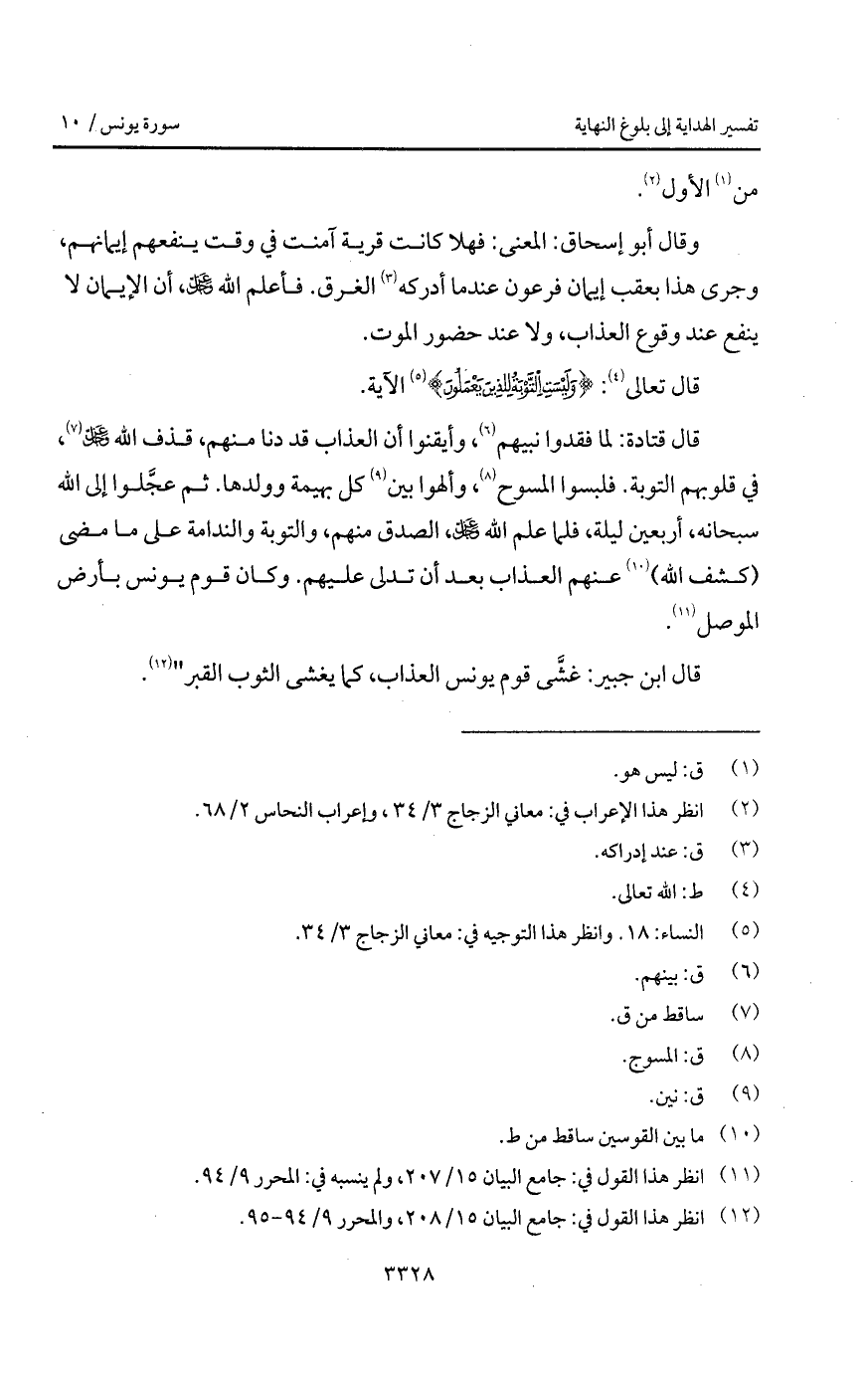 وقال أبو إسحاق: المعنى: فهلا كانت قرية آمنت في وقت ينفعهم إيمانهم، وجرى هذا بعقب إيمان فرعون عندما أدركه الغرق. فأعلم الله D، أن الإيمان لا ينفع عند وقوع العذاب، ولا عند حضور الموت.