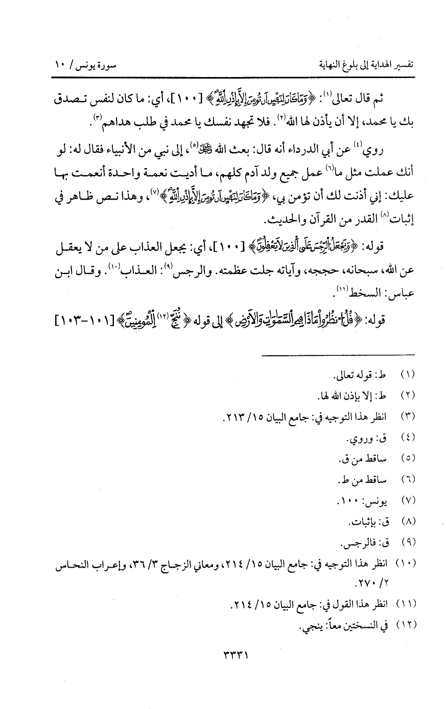 روي عن أبي الدرداء أنه قال: بعث الله D، إلى نبي من الأنبياء فقال لهم: لو أنك عملت مثل ما عمل جميع ولد آدم كلهم، ما أديت نعمة واحدة أنعمت بها عليك: إني أذنت لك أن تؤمن بي، {وَمَا كَانَ لِنَفْسٍ أَن تُؤْمِنَ إِلاَّ بِإِذْنِ الله}، وهذا نص ظاهر في إثبات القدر من القرآن والحديث.
