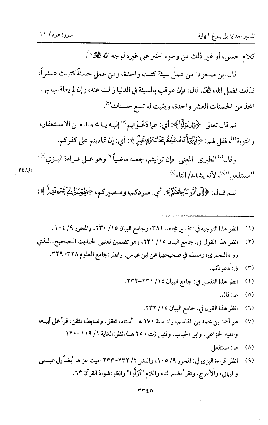 وقال الطبري: المعنى: فإن توليتم، جعله ماضياً وهو على قراؤة البزي: " مستفعل "، لأنه يشدد / التاء.