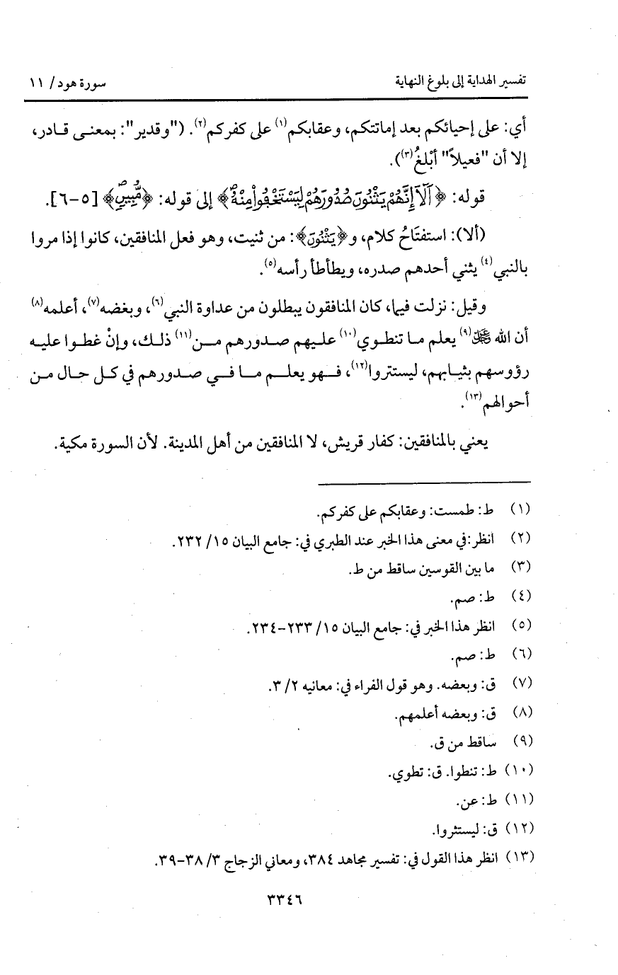 قوله: {أَلا إِنَّهُمْ يَثْنُونَ صُدُورَهُمْ لِيَسْتَخْفُواْ مِنْهُ} إلى قوله: {مُّبِينٍ}.