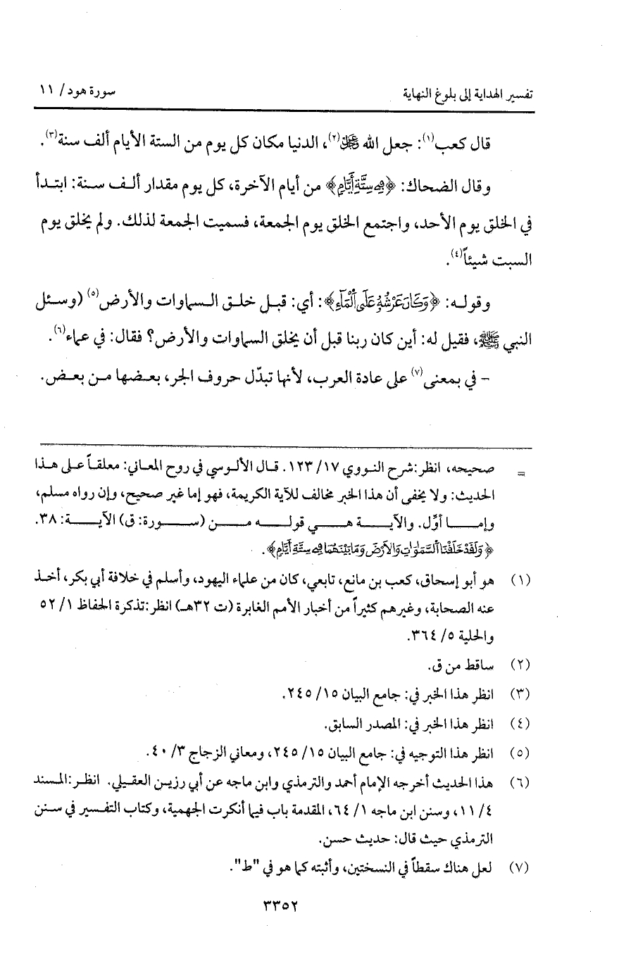 قال كعب: جعل الله D، الدنيا مكان كل يوم من الستة الأيام ألف سنة ".