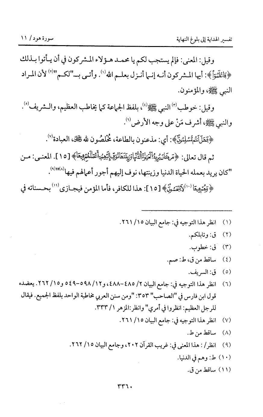 ثم قال تعالى: {مَن كَانَ يُرِيدُ الحياة الدنيا وَزِينَتَهَا نُوَفِّ إِلَيْهِمْ أَعْمَالَهُمْ فِيهَا}. المعنى: من " كان يريد بعمله الحياة الدنيا وزينتها، نوف إليهم أجورهم فيها ".