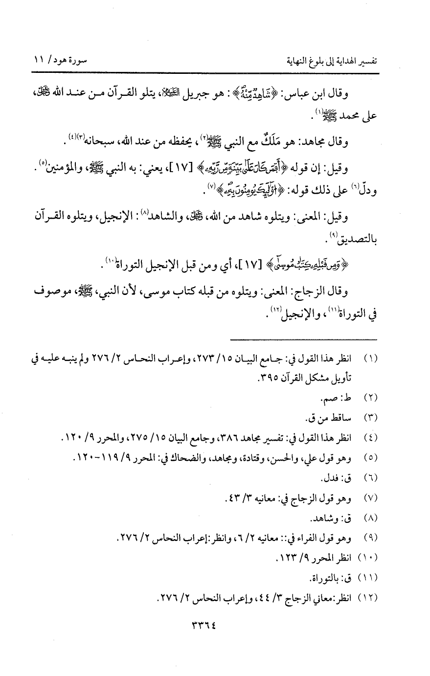 وقيل: المعنى: ويتلوه شاهد من الله، D، والشاهد: الإنجيل، ويتلوه القرآن بالتصديق.