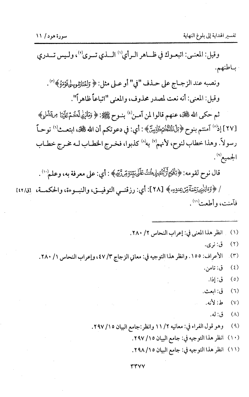 ثم حكى الله D، عنهم قالوا لمن آمن بنوح A: { وَمَا نرى لَكُمْ عَلَيْنَا مِن فَضْلٍ} إذ آمنتم بنوح {بَلْ نَظُنُّكُمْ كَاذِبِينَ}: أي: في دعوتكم أن الله D، ابتعث نوحاً رسولاً. وهذا خطاب لنوح، لأنهم به كذبوا، فخرج الخطاب له مخرج خطاب الجميع.