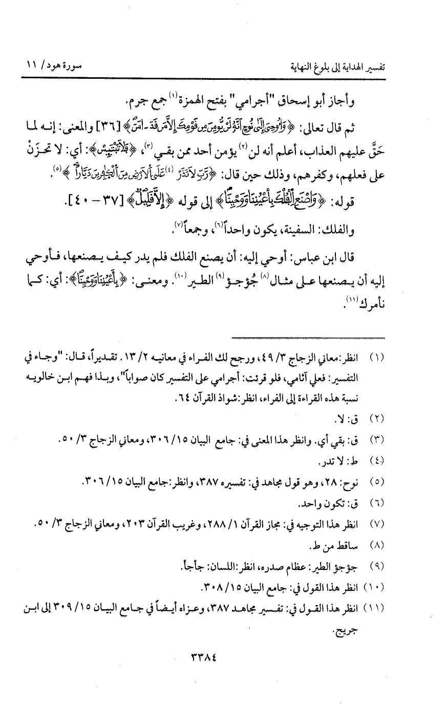 قوله: {واصنع الفلك بِأَعْيُنِنَا وَوَحْيِنَا} إلى قوله: {إِلاَّ قَلِيلٌ}.