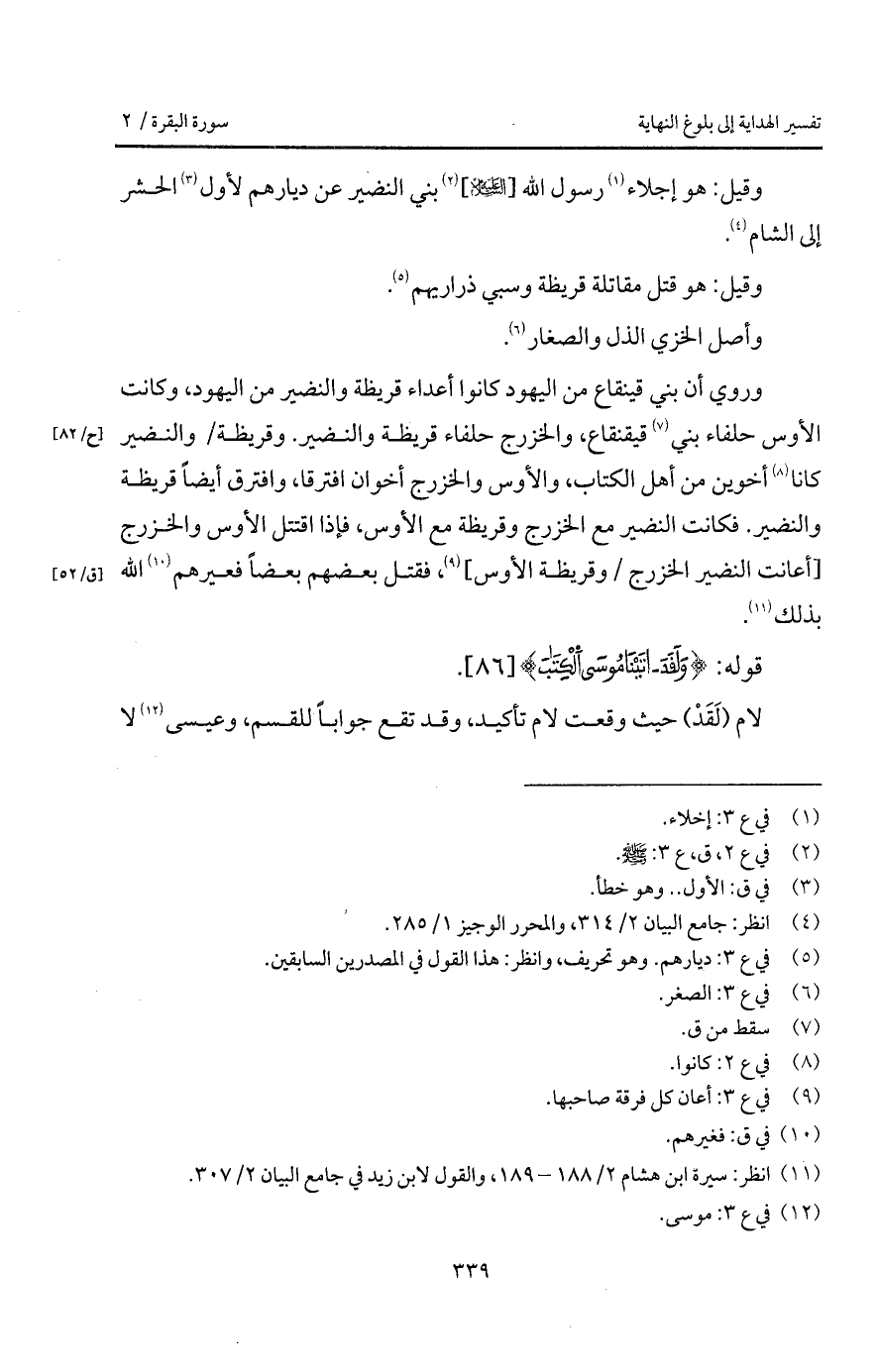 وروي أن بني قينقاع من اليهود كانوا أعداء قريظة والنضير من اليهود، وكانت الأوس حلفاء بني قينقاع، والخزرج حلفاء قريظة والنضير. وقريظة / والنضير كانا أخوين من أهل الكتاب، والأوس والخزرج أخوان افترقا، وافترق أيضاً قريظة والنضير. فكانت النضير مع الخزرج وقريظة مع الأوس، فإذا اقتتل الأوس والخزرج [أعانت النضير الخزرج / وقريظة الأوس]، فقتل بعضهم بعضاً فعيرهم الله بذلك.