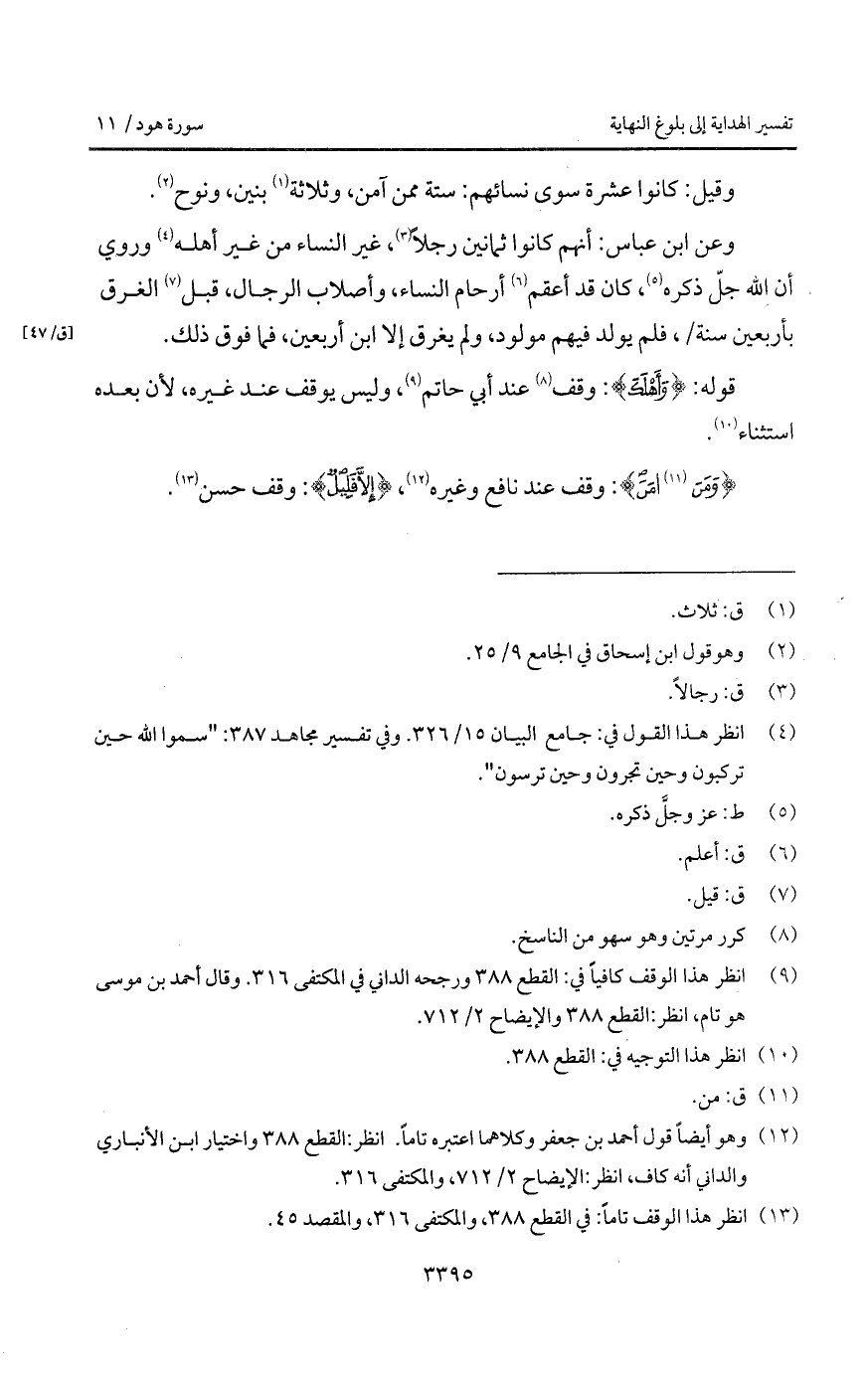 وعن ابن عباس: أنهم كانوا ثمانين رجلاً، غير النساء من غير أهله وروي أن الله جل ذكره، كان قد أعقم أرحام النساء، وأصلاب الرجال، قبل الغرق بأربعين سنة /، فلم يولد فيهم مولود، ولم يغرق إلا ابن أربعين، فما فوق ذلك.