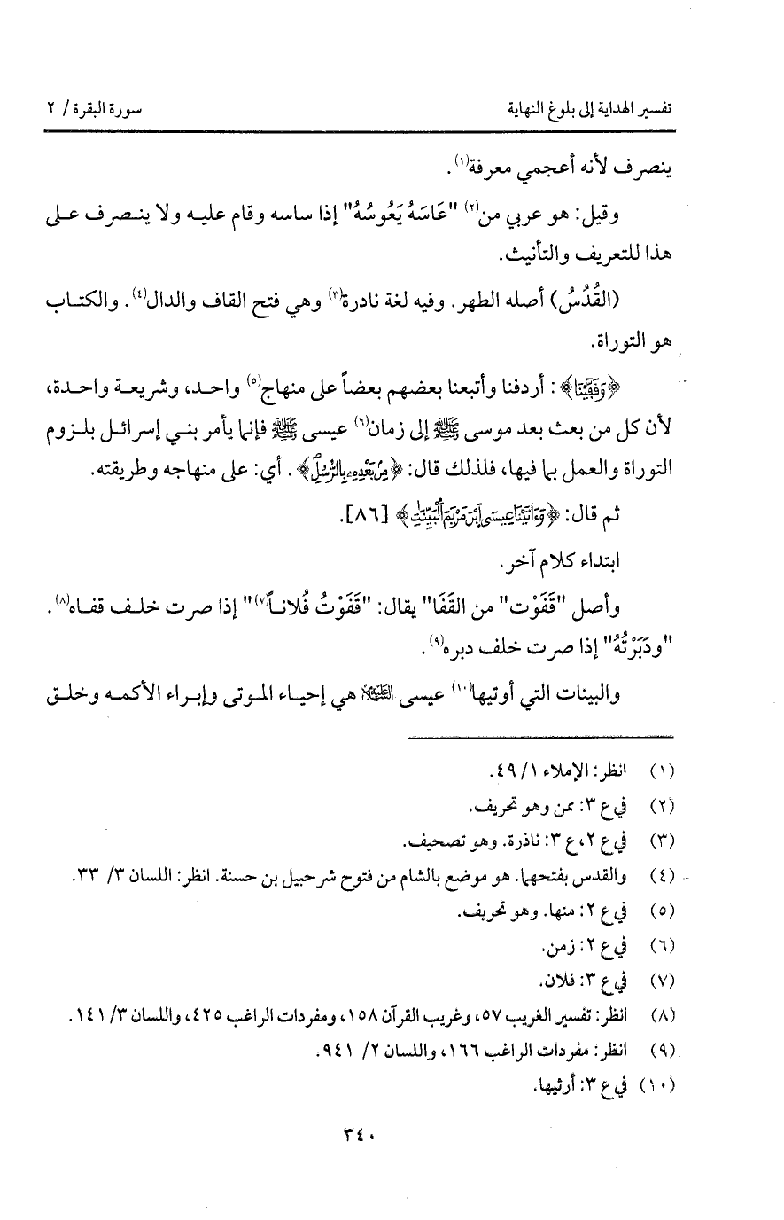 (القُدُسُ) أصله الطهر. وفيه لغة نادرة وهي فتح القاف والدال. والكتاب هو التوراة.