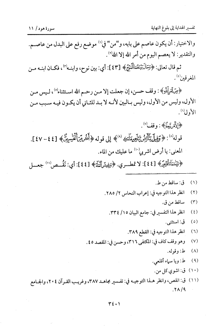قوله: {وَقِيلَ يا أرض ابلعي مَآءَكِ} إلى قوله {أَكُن مِّنَ الخاسرين}.