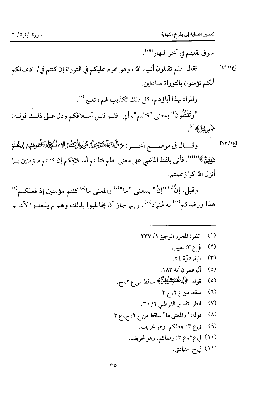 وقال في موضع آخر: {قُلْ قَدْ جَآءَكُمْ رُسُلٌ مِّن قَبْلِي بالبينات وبالذي قُلْتُمْ فَلِمَ قَتَلْتُمُوهُمْ / إِن كُنتُمْ صَادِقِينَ} [آل عمران: 183]. فأتى بلفظ الماضي على معنى: فلم قتلتم أسلافكم إن كنتم مؤمنين بما أنزل الله كما زعمتم.