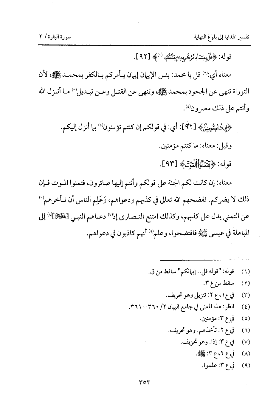 معناه أي: قل يا محمد: بئس الإيمان إيمان يأمركم بالكفر بمحمد A، لأن التوراة تنهى عن الجحود بمحمد A، وتنهى عن القتل وعن تبديل ما أنزل الله وأنتم على ذلك مصرون.