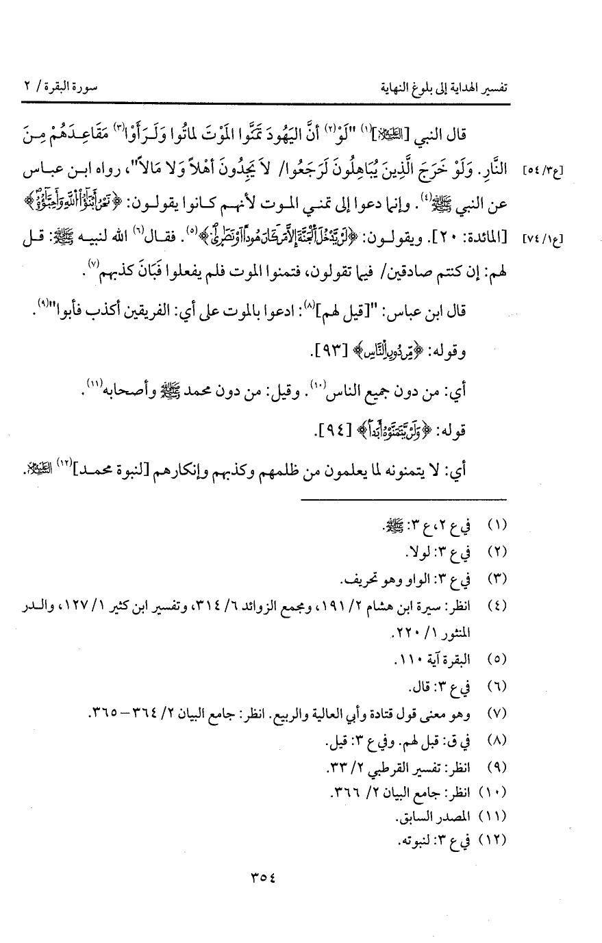 قال النبي [عليه السلام] " لَوْ أنَّ اليَهُودَ تَمَنَّوا المَوْتَ لماتُوا وَلَرَأَوْأ مَقَاعِدَهُمْ مِنَ النَّارِ. وَلَوْ خَرَجَ الَّذِينَ يُبَاهِلُونَ لَرَجَعُوا / لاَ يَجِدُونَ أهْلاً وَلا مَالاً "، رواه ابن عباس عن النبي A. وإنما دعوا إلى تمني الموت لأنهم كانوا يقولون: {نَحْنُ أَبْنَاءُ الله وَأَحِبَّاؤُهُ} [المائدة: 18]. ويقولون: {لَن يَدْخُلَ الجنة إِلاَّ مَن كَانَ هُوداً أَوْ نصارى} [البقرة: 111]. فقال الله لنبيه A: قل لهم: إن كنتم صادقين / فيما تقولون، فتمنوا الموت فلم يفعلوا فَبَانَ كذبهم.