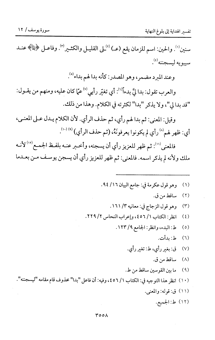 وقيل: المعنى: ثم بدا لهم رأي، ثم حذف الرأي. لأن الكلام يدل على المعنى، أي: ظهر لهم رأي لم يكونوا يعرفونَهُ، (ثم حذف الرأي).