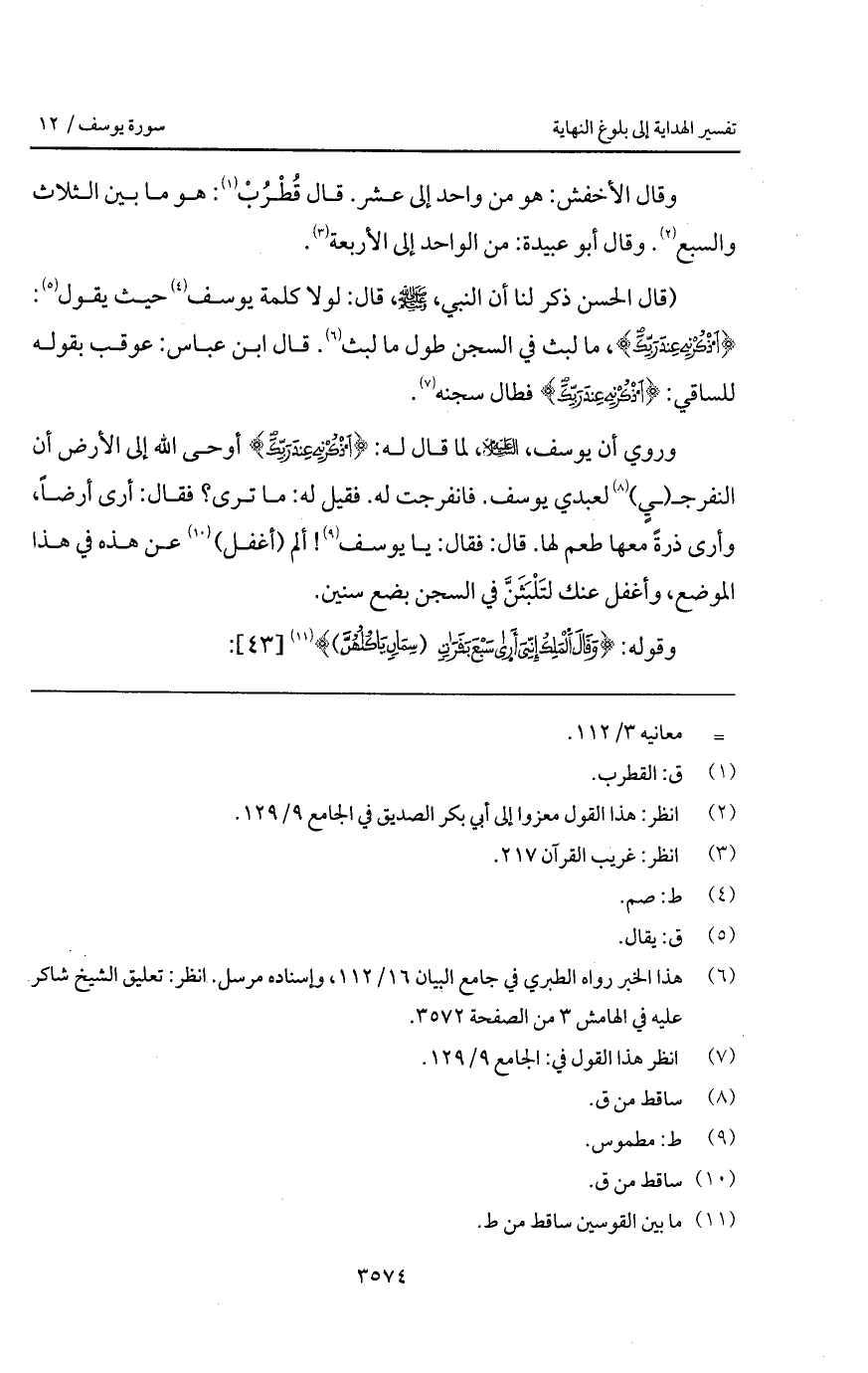 (قال الحسن ذكر لنا أن النبي، A، قال: لولا كلمة يوسف حيث يقول: {اذكرني عِندَ رَبِّكَ}، ما لبث في السجن طول ما لبث. قال ابن عباس: عوقب بقوله للساقي: {اذكرني عِندَ رَبِّكَ} فطال سجنه.