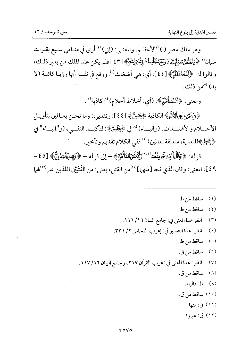 {وَمَا نَحْنُ بِتَأْوِيلِ الأحلام} الكاذبة {بِعَالِمِينَ}: وتقديره: وما نحن بعالمين بتأويل الأحلام والأَغاث. (والباء) في {بِعَالِمِينَ}: لتأكيد النفي، (و " الباء " في {بِتَأْوِيلِ} لتعدية، متعلقة بعالمين) ففي الكلام تقديم وتأخير.