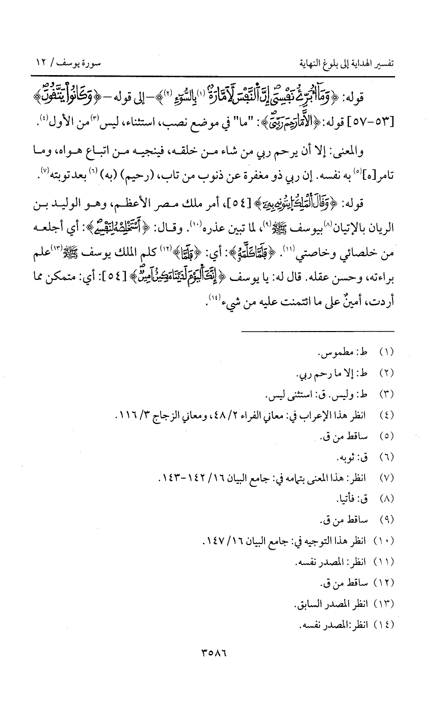 قوله: {وَمَآ أُبَرِّىءُ نفسي إِنَّ النفس لأَمَّارَةٌ بالسوء} - إلى قوله - {وَكَانُواْ يَتَّقُونَ} قوله: {إِلاَّ مَا رَحِمَ ربي}: " ما " في موضع نصب، استثناء، ليس من الأول.
