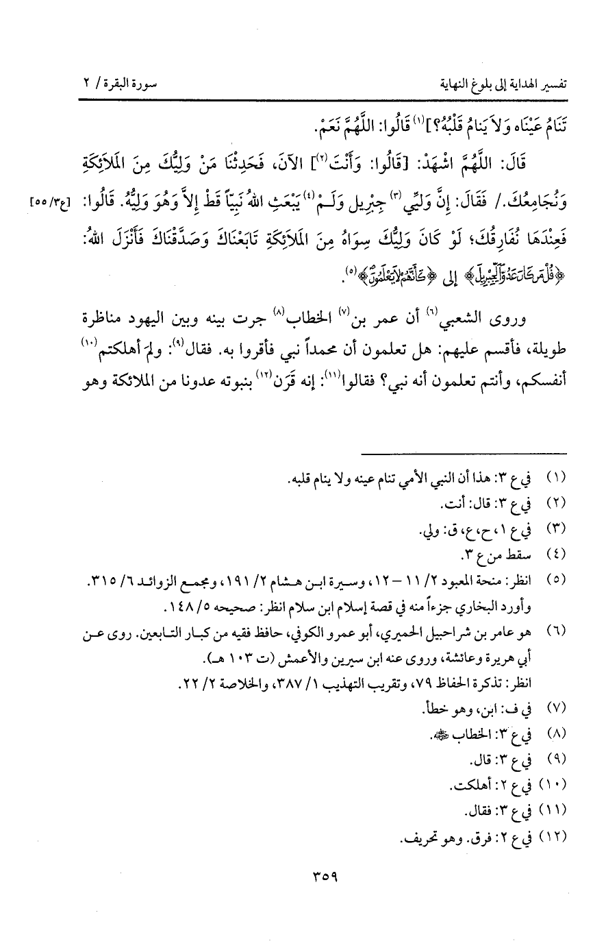 وروى الشعبي أن عمر بن الخطاب جرت بينه وبين اليهود مناظرة طويلة، فأقسم عليهم: هل تعلمون أن محمداً نبي فأقروا به. فقال: ولمَ أهلكتم أنفسكم، وأنتم تعلمون أنه نبي؟ فقالوا: إنه قَرَن بنبوته عدونا من الملائكة وهو