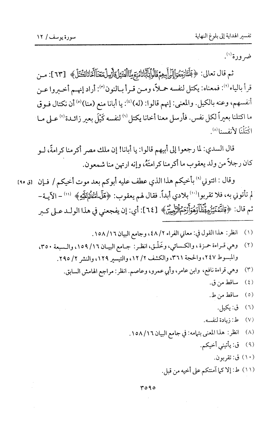 ثم قال تعالى: {فَلَمَّا رَجَعُوا إلى أَبِيهِمْ قَالُواْ يا أبانا مُنِعَ مِنَّا الكيل فَأَرْسِلْ مَعَنَآ أَخَانَا نَكْتَلْ}: من قرأ بالياء: فمعناه: يكتل لنفسه حملاً، ومن قرأ بالنون: أراد إنهم أخبروا عن أنفسهم، وعنه بالكيل. والمعنى: إنهم قالوا: (له): يا أبانا منع (منا) أن نكتال فوق ما اكتلنا بعيراً لكل نفس. فأرسل معنا أخانا يكتل لنفسه كَيْلَ بعير زائدة على ما اكْتَلْنَا لأنفسنا.