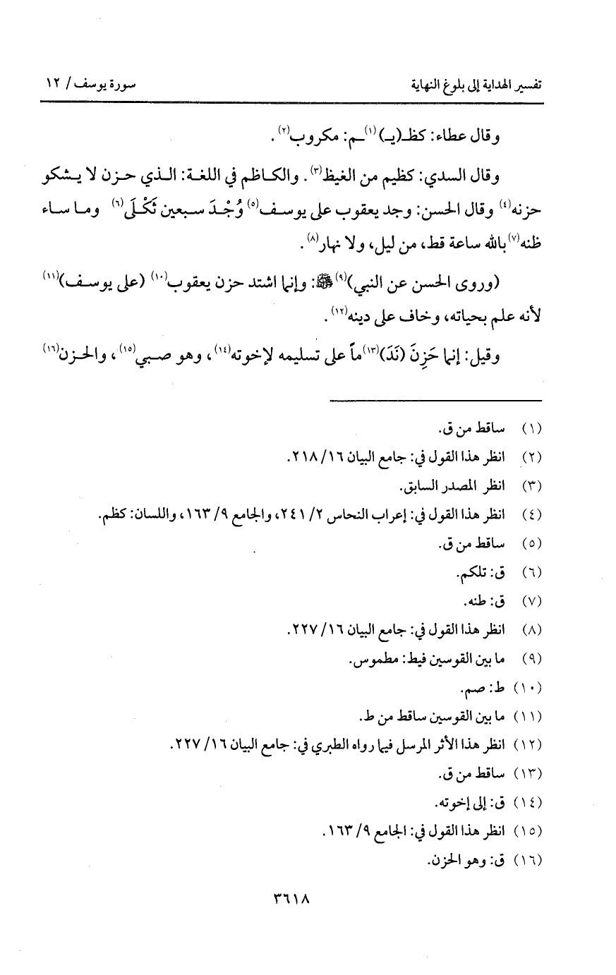 (وروى الحسن عن النبي) A: " وإنما اشتد حزن يعقوب (على يوسف) لأنه علم بحياته، وخاف على دينه ".