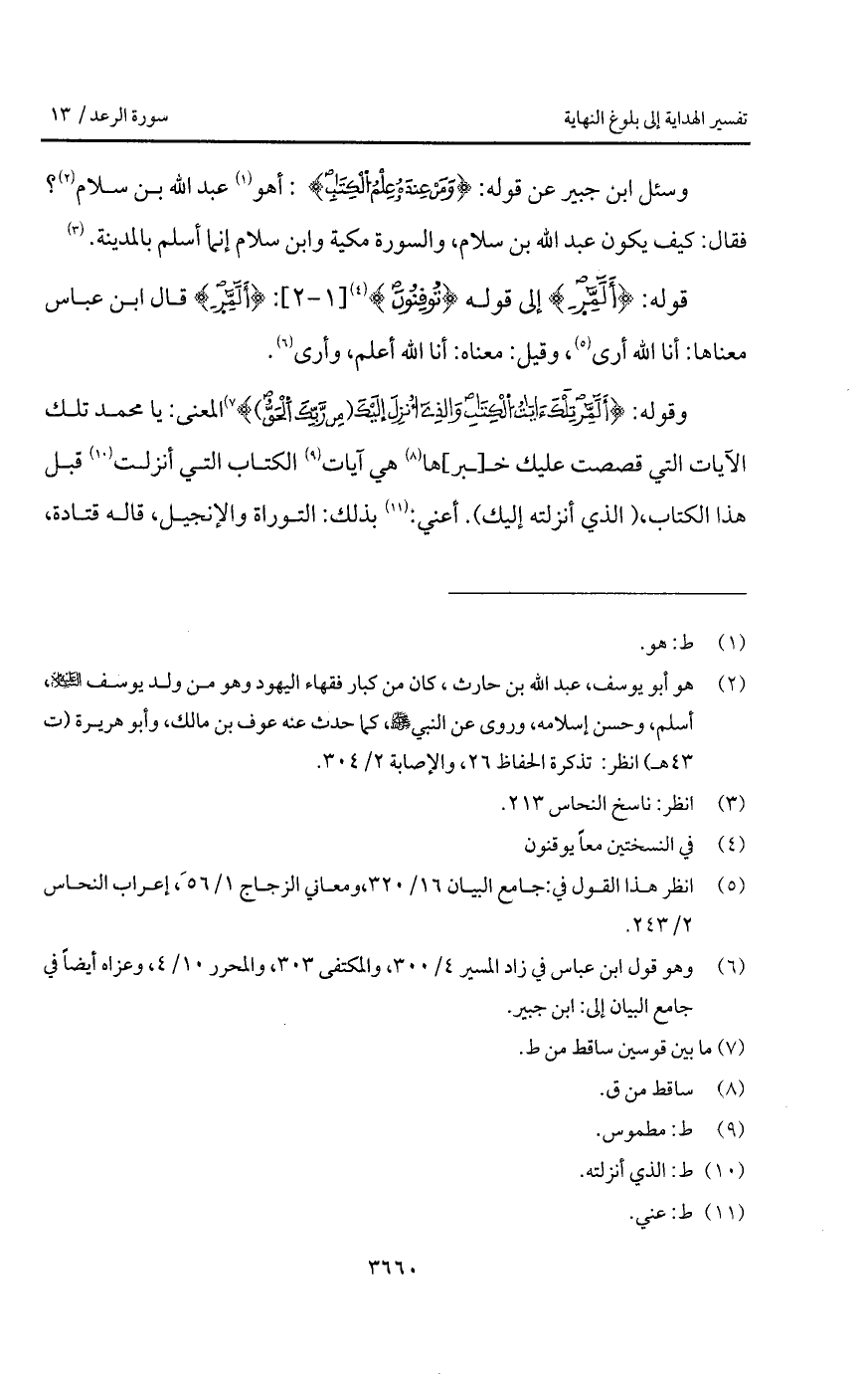 وسئل ابن جبير عن قوله: (وَمَنْ عِنْدَهُ عِلْمُ الْكِتَابِ): أهو عبد الله بن سلام؟