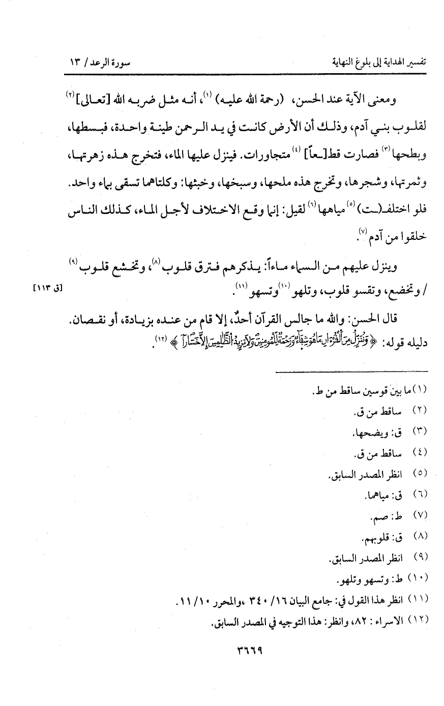 قال الحسن: والله ما جالس القرآن أحدٌ، إلا قام من عنده بزيادة، أو نقصان. دليله قوله: {وَنُنَزِّلُ مِنَ القرآن مَا هُوَ شِفَآءٌ وَرَحْمَةٌ لِّلْمُؤْمِنِينَ وَلاَ يَزِيدُ الظالمين إَلاَّ خَسَاراً} [الإسراء: 82].